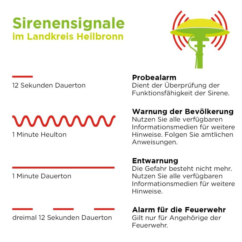 Am Donnerstag, 11. Dezember 2025, werden um 11 Uhr die Sirenen im Landkreis Heilbronn überprüft. Neben den Sirenen wird auch ein Probealarm über die Warn-App NINA ausgelöst. Eine Warnung über die Mobilfunkgeräte via Cell Broadcast erfolgt nicht, dieses Medium wird lediglich am bundesweiten Warntag geprobt.